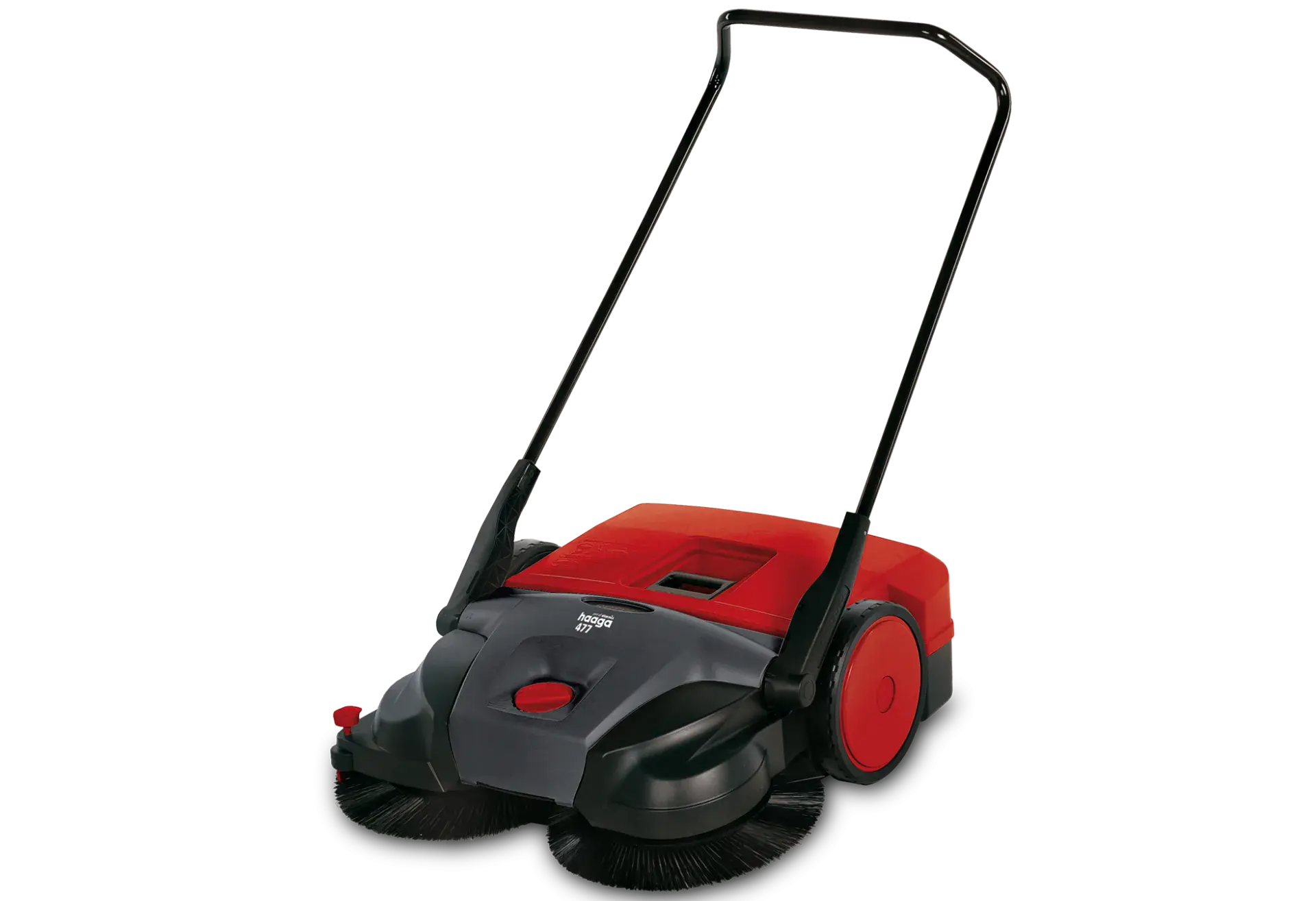 Suitable for larger areas up to approx. 1,500 m² (e.g. petrol stations, workshops, car parks). Best sweeping performance, efficient sweeping: With turbo sweeping system, sweeping capacity 3,000 m²/h, container volume 50 litres - with disc brushes projecting on both sides, with side roller on one side, infinitely variable height adjustment, 4-year guarantee on brush wear.